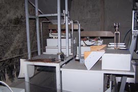 Maschine mit Untergestell, Vorrats- und Auslauftrichter.